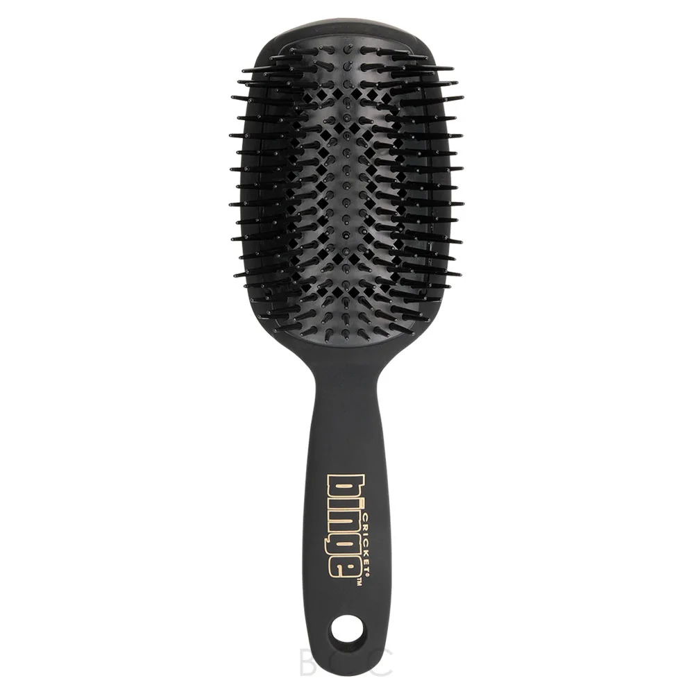 Detangle hair in no time with the Cricket Binge Compact Cushion Styler Brush. Designed to detangle even the most unruly of hair, this brush features sculpted nylon bristles to eliminate snagging your hair. With a rubberized handle, this brush is comfortable and easy to use.