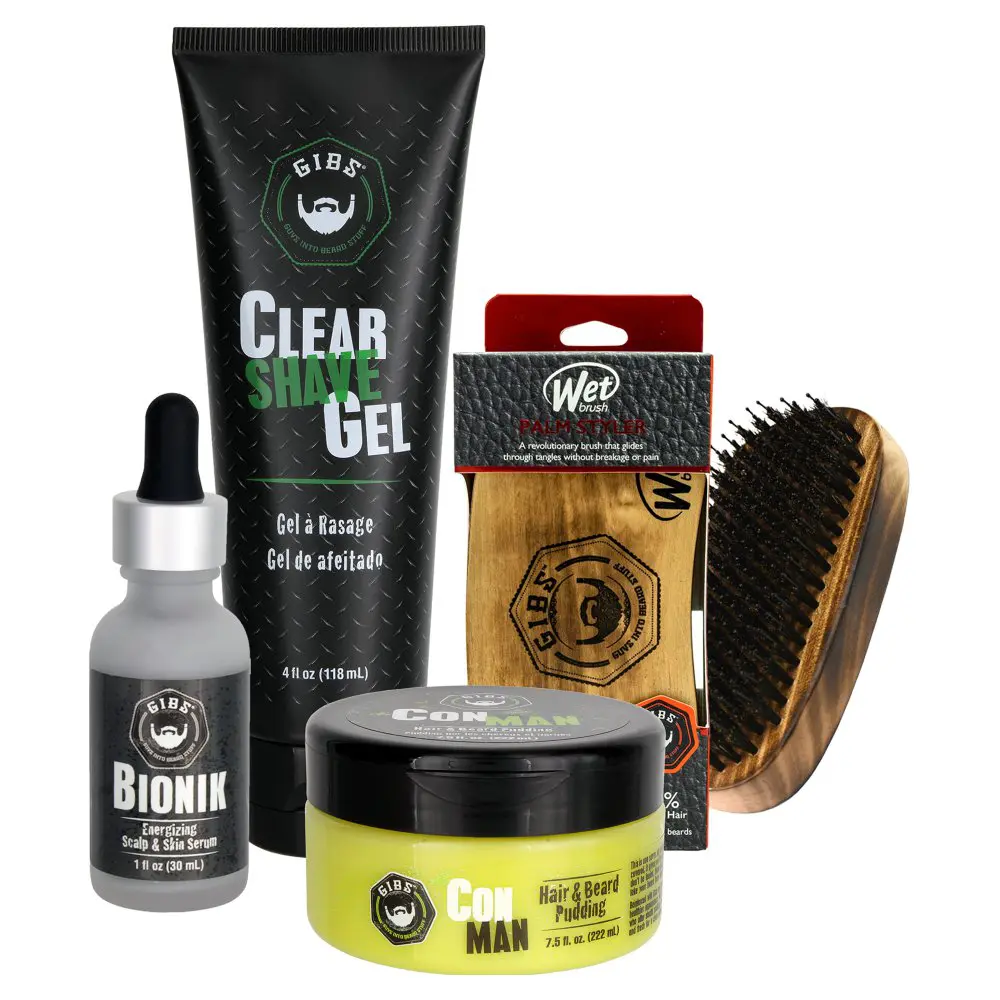 Start his beard transformation off with the Gibs Clear Shave Gel. This silky smooth gel enables his razor to effortlessly glide across his skin while Glycerin functions as an anti-inflammatory, resulting in a close shave that is free of irritation. Clear Shave Gel also moisturizes his skin while he shaves and is suitable for everyone, regardless of location.