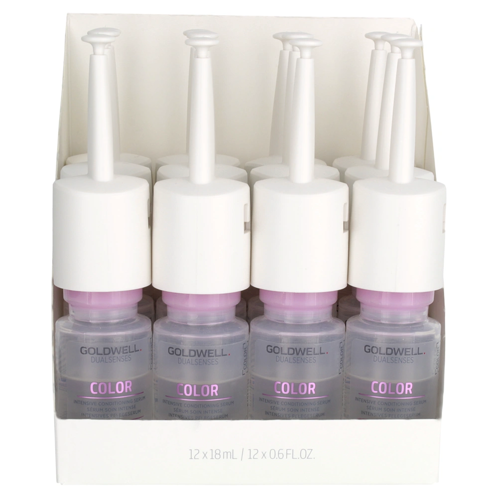 This Leave-In Serum will instantly make your hair color more brilliant and add more of a healthy shine. Leave-in Serum uses the Brilliance System with Pomegranate Extract and UV Filters combined with the Instant Microfluid Technology to give your hair that rich healthy look. MicroPROtec Complex distributes essential care ingredients quickly and evenly and protects from color fade out, while Luminescine transforms non-visible UV light into visible light for magnificent brilliance. The Goldwell Dualsenses Color Intensive Conditioning Serum is fragranced by a fruity blend of lychee, watermelon, blackcurrant, and raspberry, softened by accents of lime blossom and lily of the valley combined with woody notes. It is ideal for instantly locking in color and amplifying color luminosity.