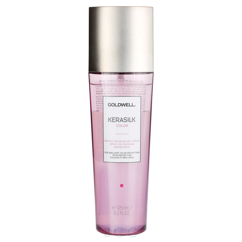 Blow dryers and styling irons can cause hair to look fried and stressed out. Goldwell Kerasilk Color Protective Blow-Dry Spray protects your hair from being damaged by styling heat. This amazing thermal protecting formula also enhances color with tamanu oil. It shields hair from color fading UV rays to give your hair the best coverage for damage. After styling with Kerasilk Blow Dry Spray, hair will have a noticeable salon standard of shine and vibrancy.