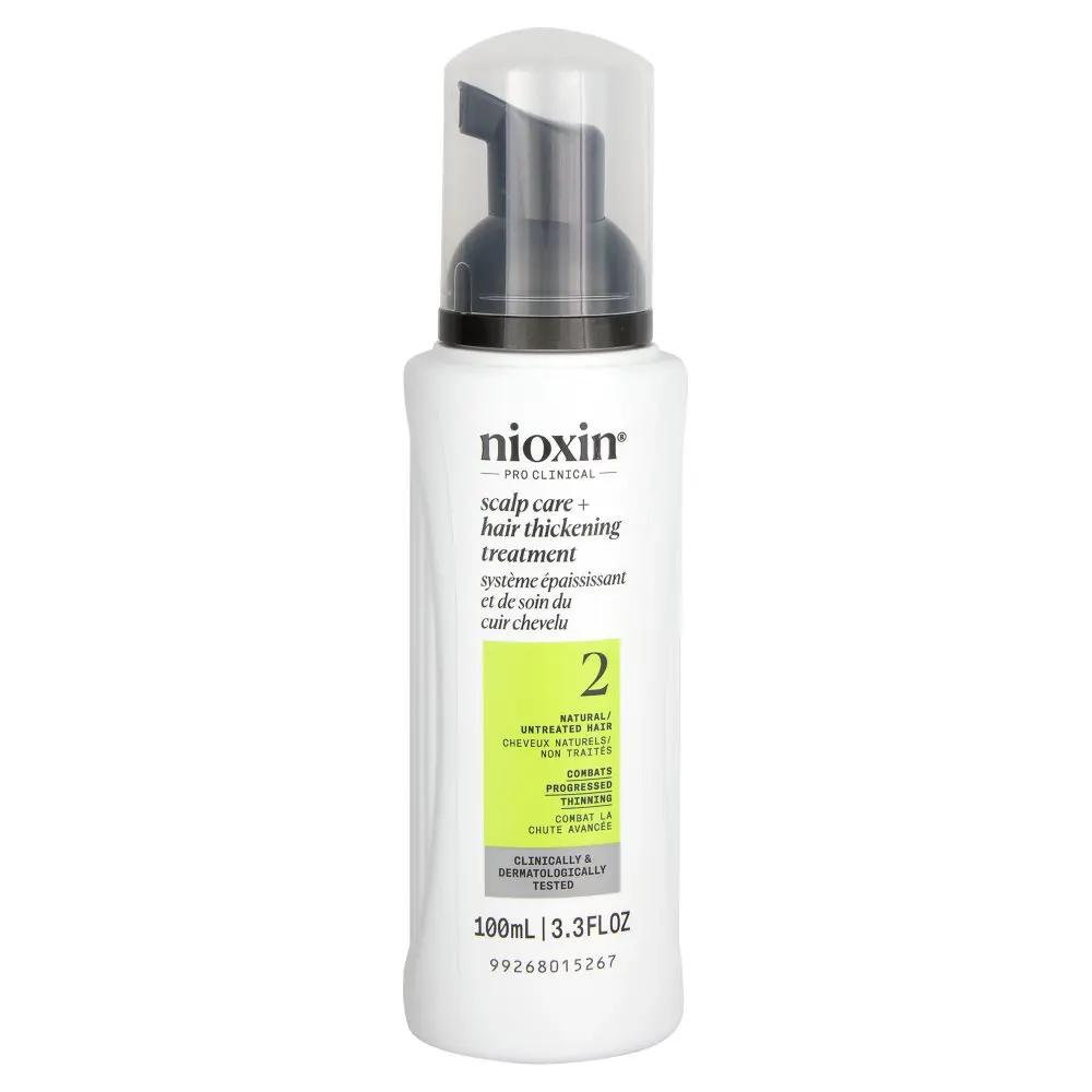 The NIOXIN System 2 Scalp & Hair Treatment is specially designed for noticeably thinning, fine, natural hair. It delivers denser-looking hair and a healthy shine while protecting the scalp. Contains antioxidants and botanicals that help to provide a refreshed scalp environment. SPF 15. With Scalp Access Delivery System 2.0, Nioxin’s System 2 hair treatment helps prevent hair loss due to breakage, providing a refreshed scalp environment and thicker, fuller-looking hair. Nioxin Scalp and Hair Treatment is the final step of a 3-part System, designed to strengthen the hair and amplify hair structure.