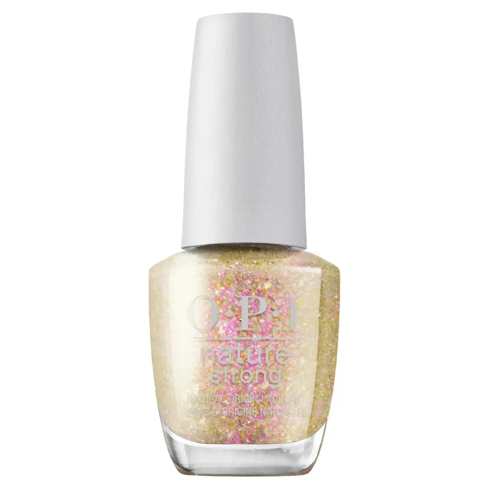 Feel golden and look glamorous in this polish! The OPI Nature Strong Natural Nail Lacquer – Mind-Full Of Glitter is an opalescent glitter shade that really lets you get your bling on. The OPI Nature Strong collection is OPI’s first natural origin nail lacquer, which lasts up to seven days of wear and shine. Use your natural-origin nail polish shade with Nature Strong Top Coat for extended wear. These natural and vegan nail lacquers are extremely powerful and are available in many shades, glitters, and base and top coats to up your vegan routine!
