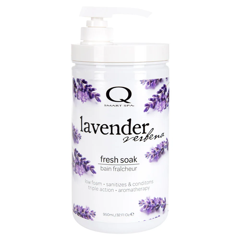 The solution for all your manicure and pedicure needs, the Qtica Smart Spa Lavender Verbena Triple Action Fresh Soak. This soak uses foam control technology making them ideal for pedicure and manicure bowls, sanitizes water, softens water to help moisturize your skin, all while generating a wonderful aroma!