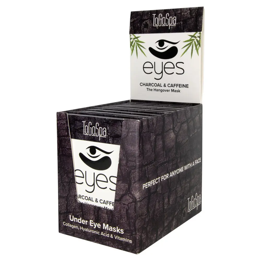 Reduce the puff in your under-eye area with the ToGoSpa Bamboo Charcoal EYES Mask. This under-eye mask has micro-infused collagen and marine plant collagen, hyaluronic acid, vitamins C & E, antioxidants, and purifying bamboo charcoal to absorb impurities and detoxify the skin. Also known as ” The Hangover Mask” Bamboo Charcoal Eyes provide cool, soothing relief after a night of too much fun! In just one 15-20 minute use you will see improved elasticity, texture, and overall appearance of your under-eye.