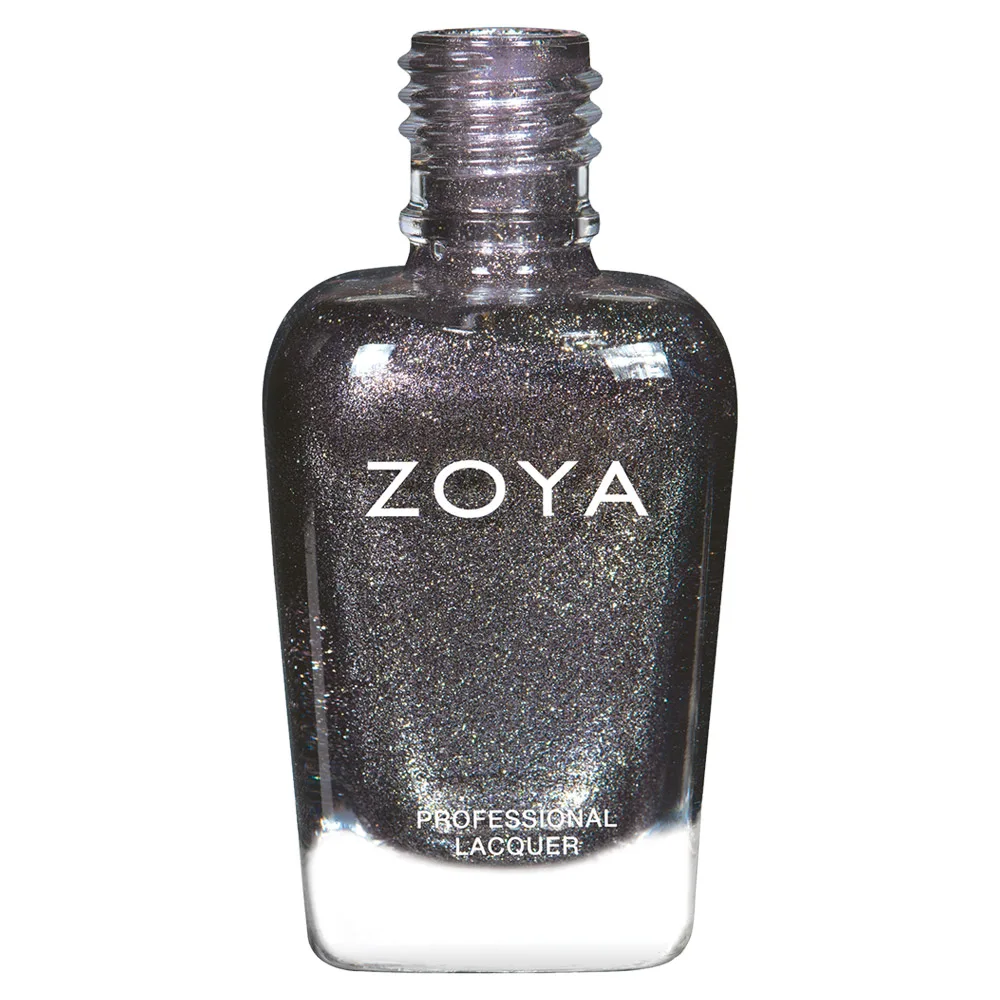 Troy is a liquid pewter with a foil finish and an edgy touch of black and gold. Densely pigmented, smooth application.